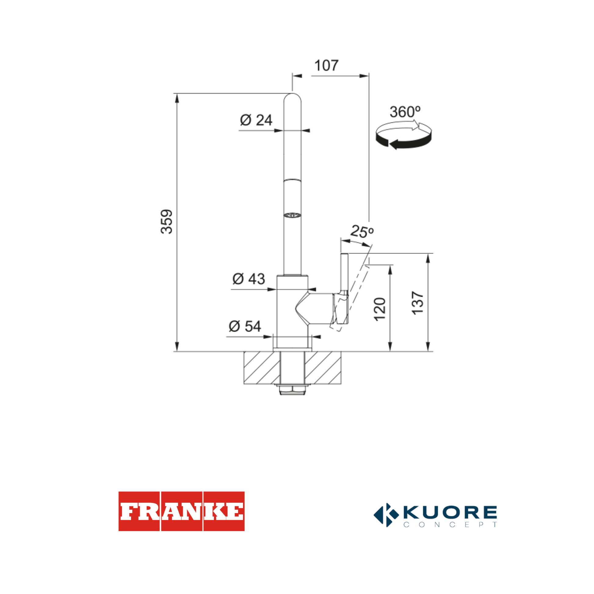 FRANKE - Grifo mezclador cromado - LINO DOCCIA SINGLE LEVER MIXER CHROME FINISH - 1150693229