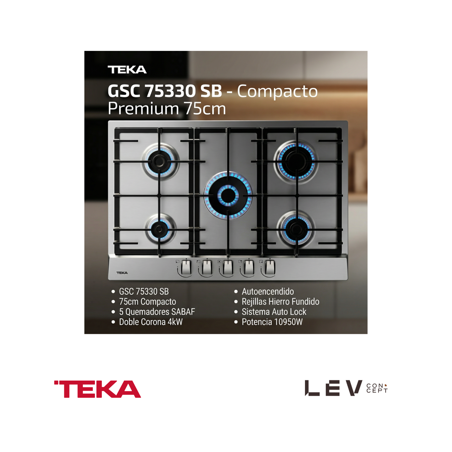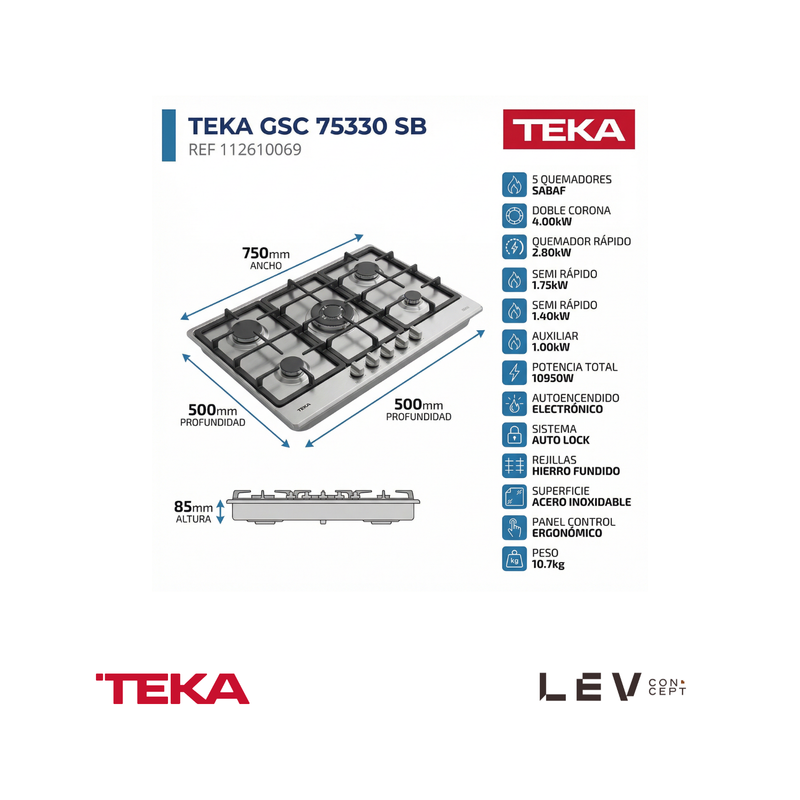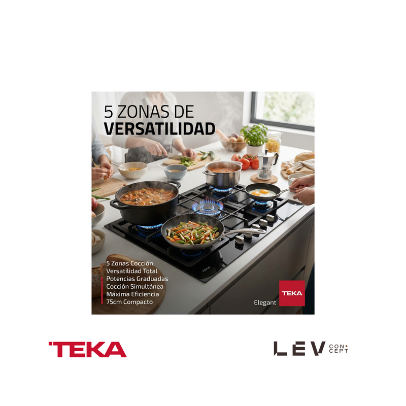 TEKA - Encimera de gas con 5 zonas de cocción y encendido automático GSC 75330 SB - 112610069