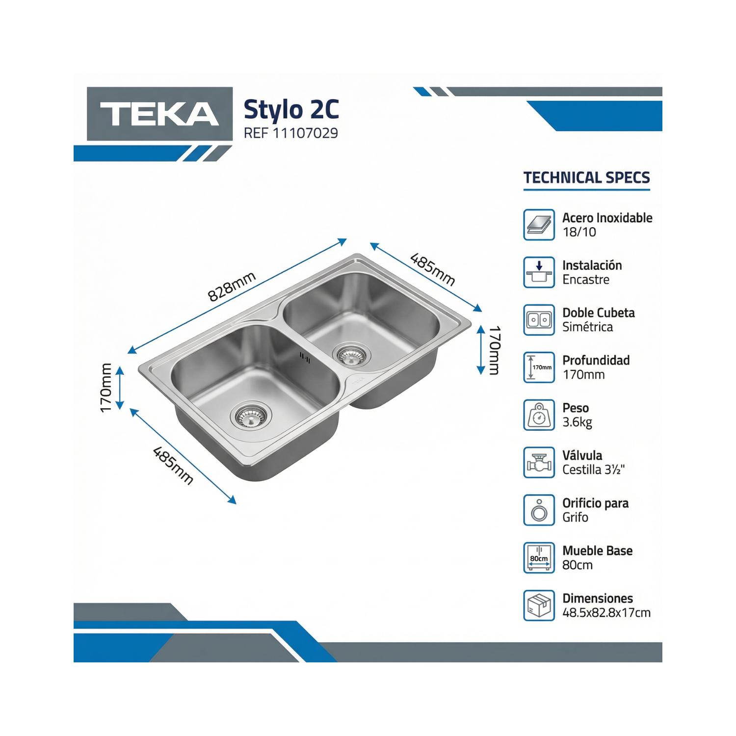TEKA - Fregadero de sobre poner; STYLO 2C GT- 11107029